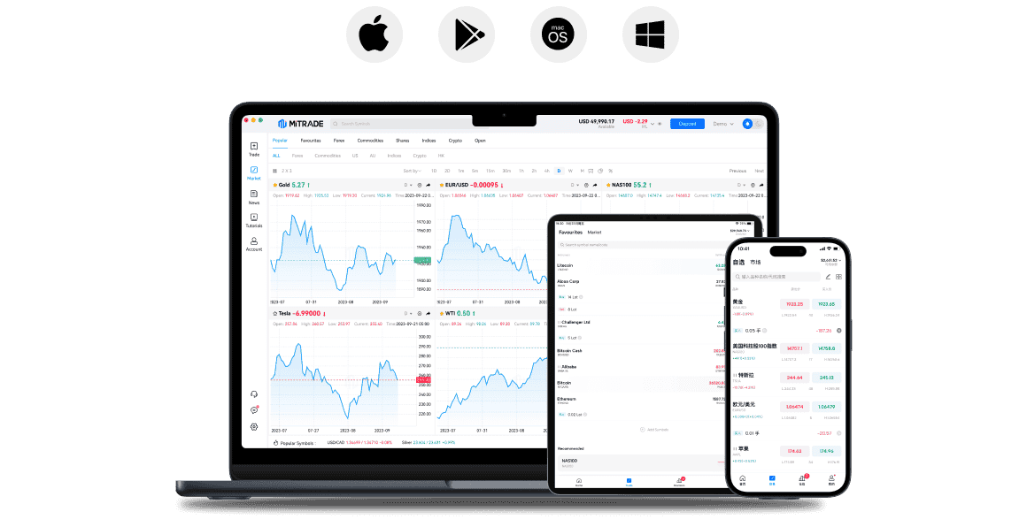 Mitrade是由权威机构授权监管的金融科技公司,专注于为投资者提供简单便捷的差价合约(CFDs)交易体验。通过Mitrade平台,您可以投资、交易更广泛的国际金融市场,涵盖股票、指数、商品、外汇等数百个热门品种。